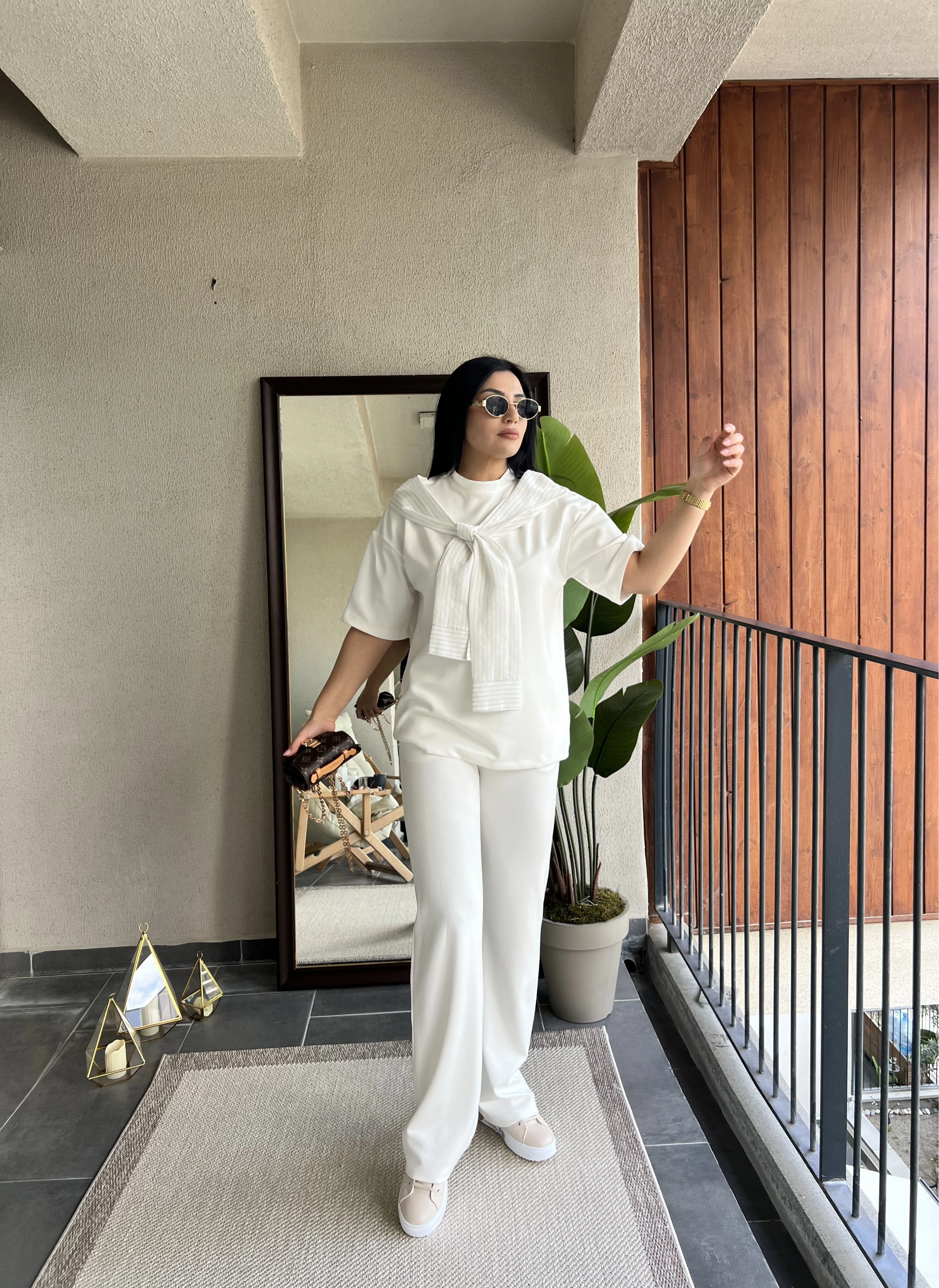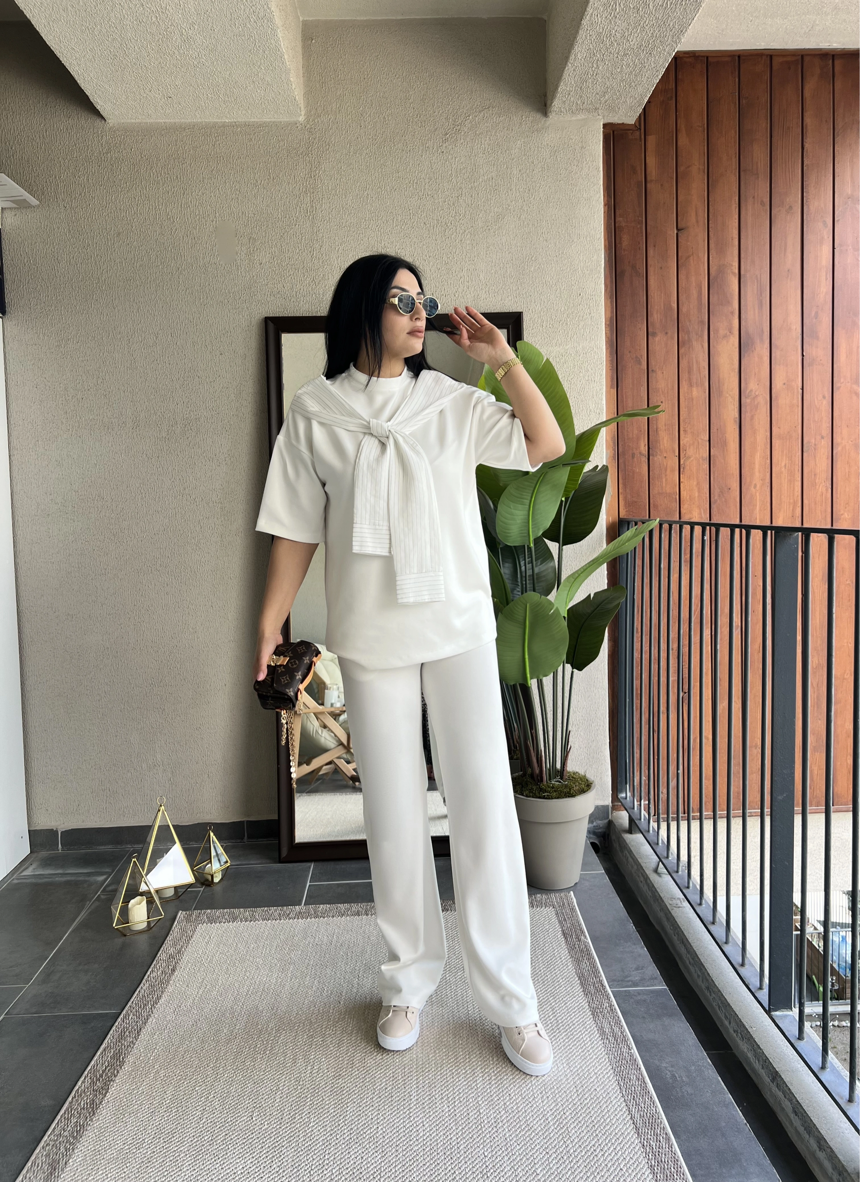 Fularlı Beyaz Oysho Kumaş Takım