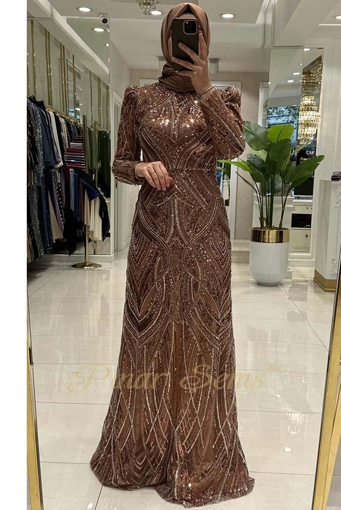 Zarafetin ve modernizmin kusursuz yansıması... Pınar Şems Gökçe Abiye, Bakır renginin asil duruşuyla özel günlerinizin baş tacı olmaya aday. Tesettür giyim modasında fark yaratan bu özel tasarım, ince işçiliği ve muhafazakar giyim standartlarına uygun kalıbıyla size eşsiz bir özgüven sunuyor.