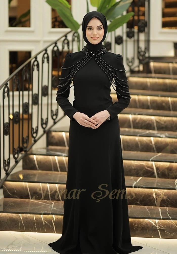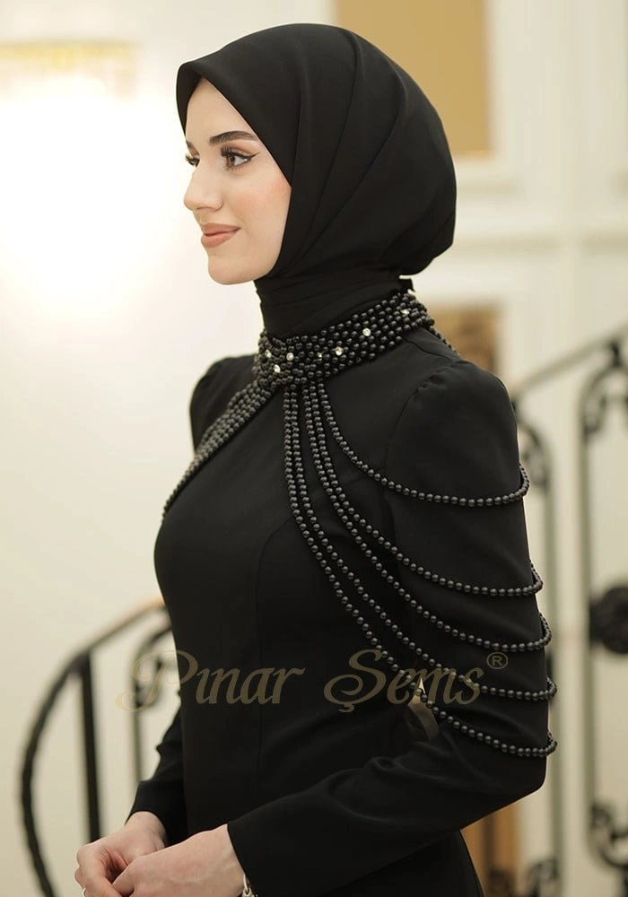Geceye imzasını atmak isteyenler için: İnci Nur Abiye. Siyah tonunun büyüleyici etkisi, usta kalıplarla birleşerek ortaya şıklık ve konforu aynı anda sunan bir sanat eseri çıkarıyor.